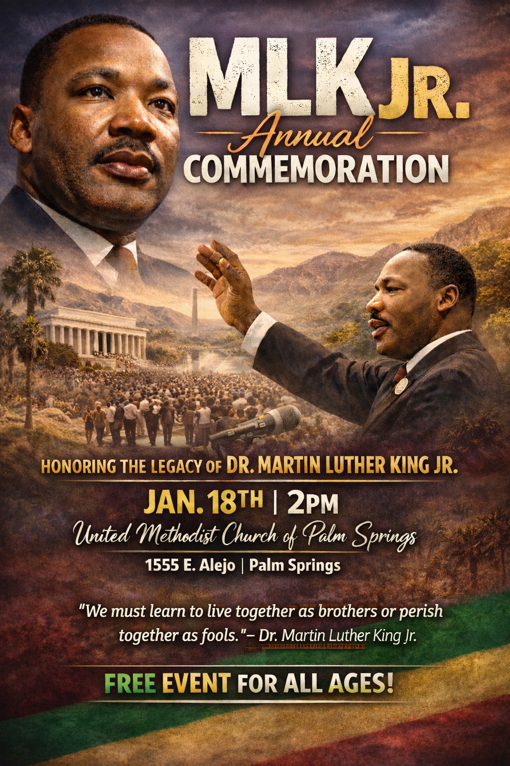 Location: United Methodist Church of Palm Springs, 1555 E. Alejo Road.