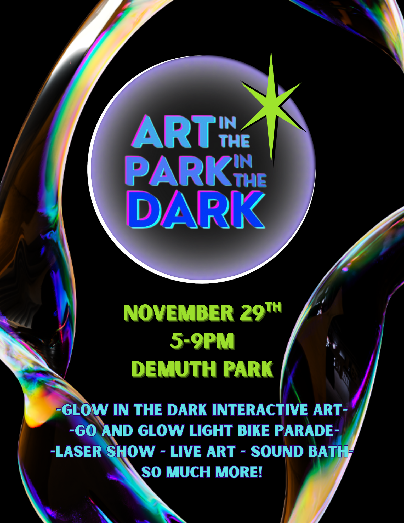 This FUN FREE event fills the skies and trees with lasers and Demuth Park with black lights and neon on Nov. 29th from 5-9pm in Demuth park.