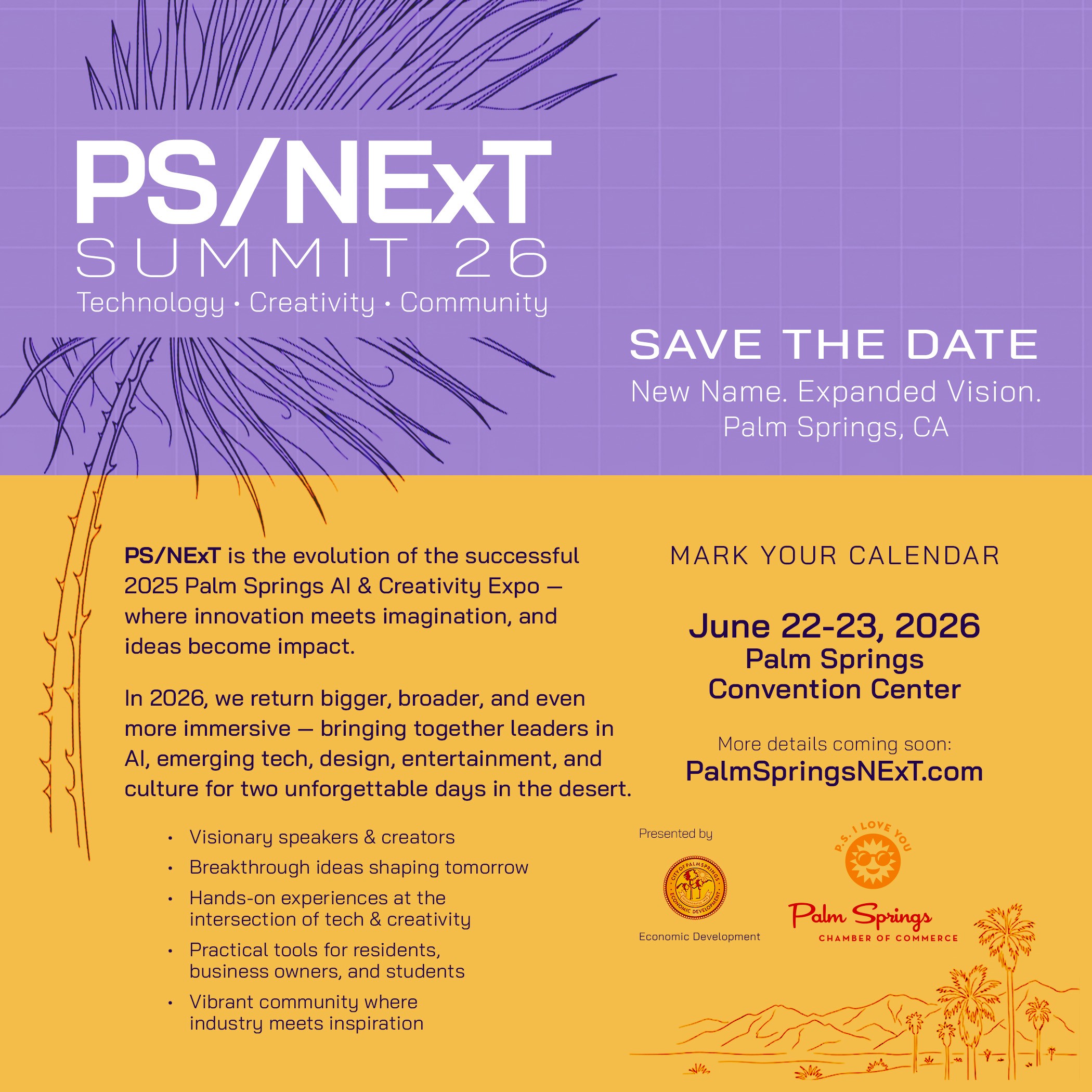 Save the date! The summit will be held at the Palm Springs Convention Center. More details coming soon at PalmSpringsNExt.com