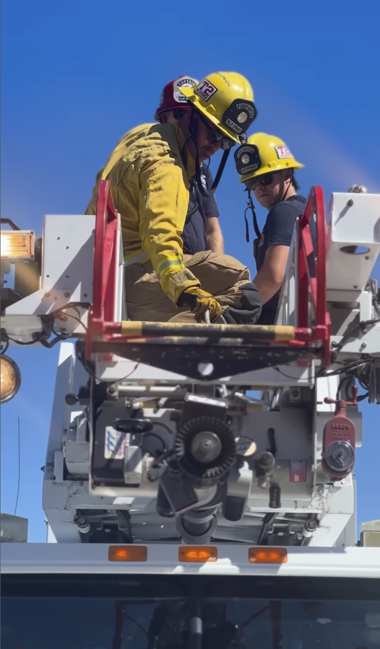🚒 On deck with Truck 2! Captain Bonelli’s keeping a sharp eye as Firefighter Schwetz scales the mighty 105-foot aerial. Meanwhile, Firefighter Adamson is at the controls, getting hands on with “flying the stick” as he gears up for that operator spotlight. #training