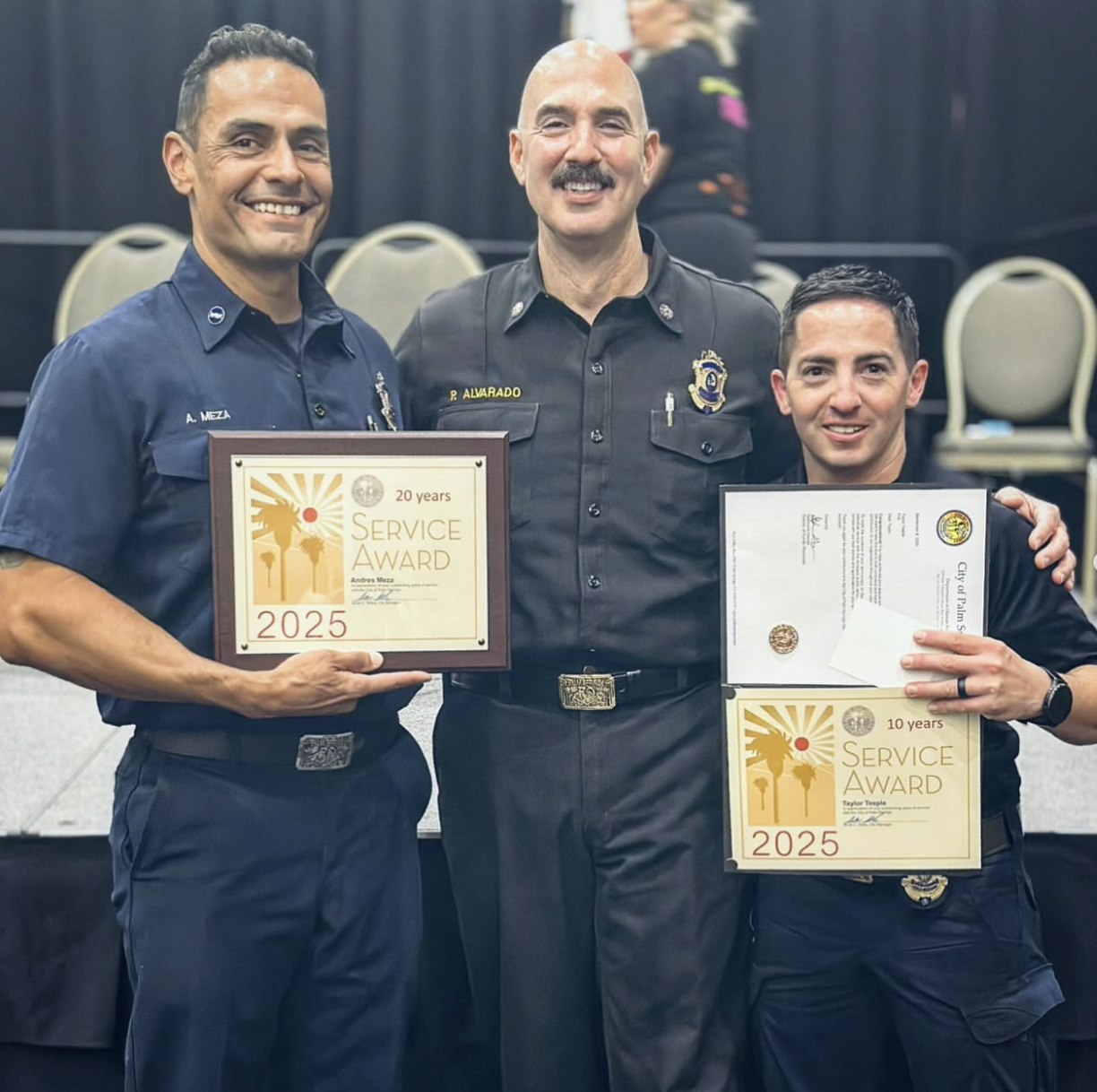 Today, our firefighters had the honor of attending the 2025 City of Palm Springs Employee Luncheon. We were proud to be there as Engineer Meza and Fire Marshal Teeple were recognized for their dedicated service—Engineer Meza celebrating 20 years and Fire Marshal Teeple marking 10 years. Congratulations to both, and thank you for your continued commitment to our community! #committed