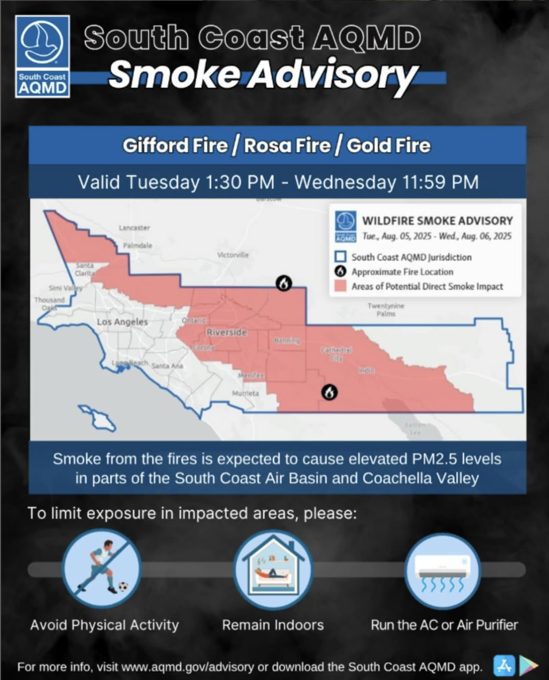 #CoachellaValley #AirQualityAlert #RosaFire #SmokeSafety #PalmSprings #WildfireSmoke