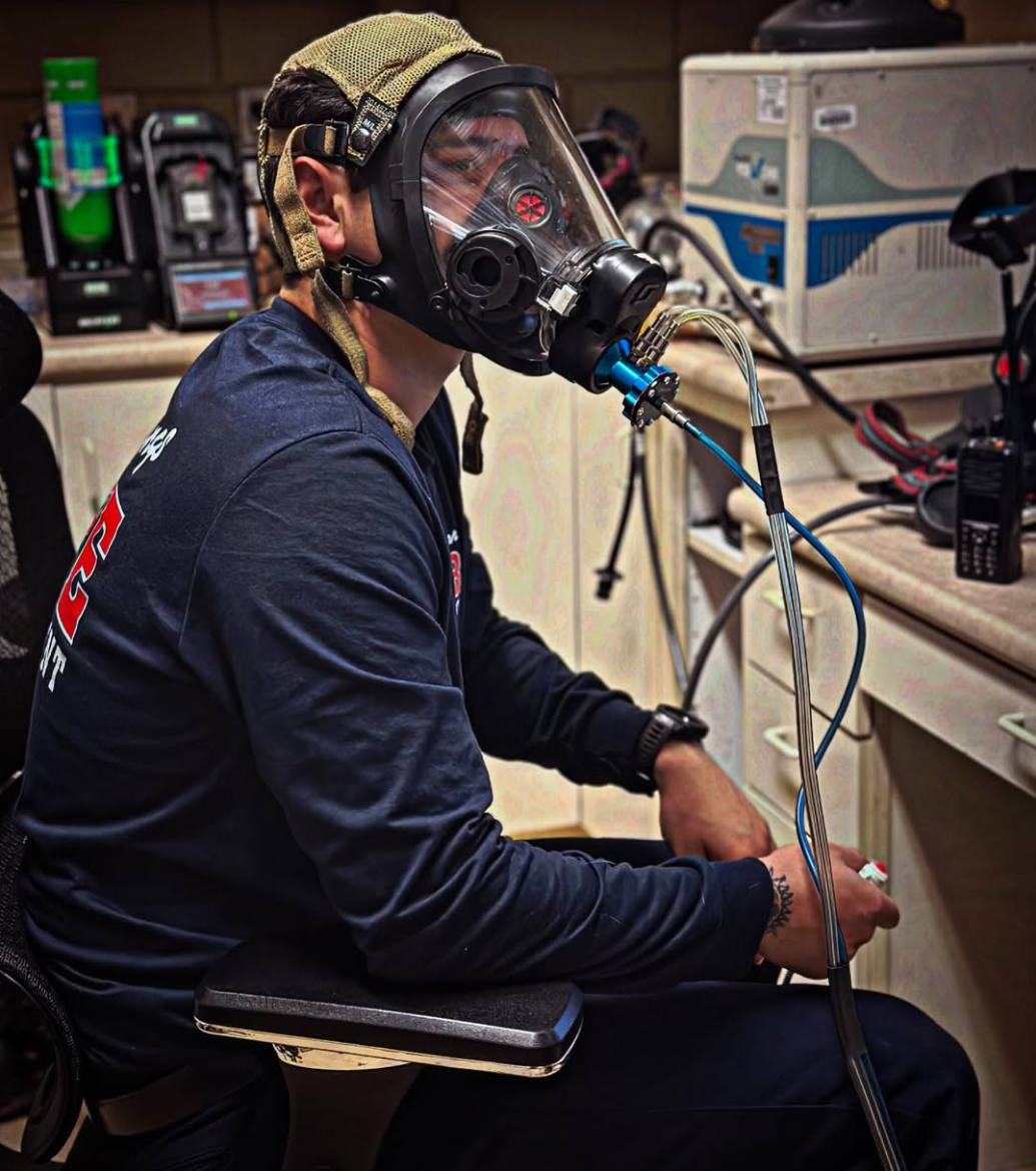 Sealed, suited, and ready. Annual fit testing in action! 😄🔥