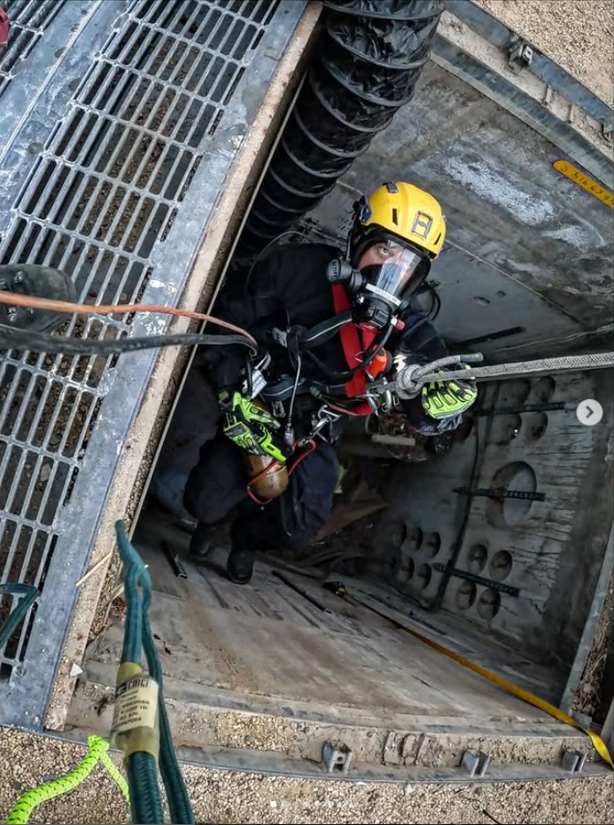 Downtown rescue in action! Take a look at the moments captured during our recent confined-space incident. One person safely rescued.