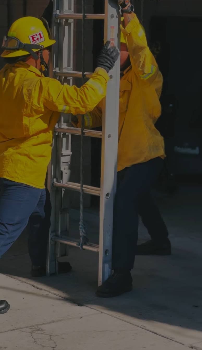 FF Ortiz and FF Gonzalez training hard for their first trimester test. Treating a 24’ ladder like a 35’. Sets. Reps. Sweat. That’s where camaraderie is built. #palmsprings