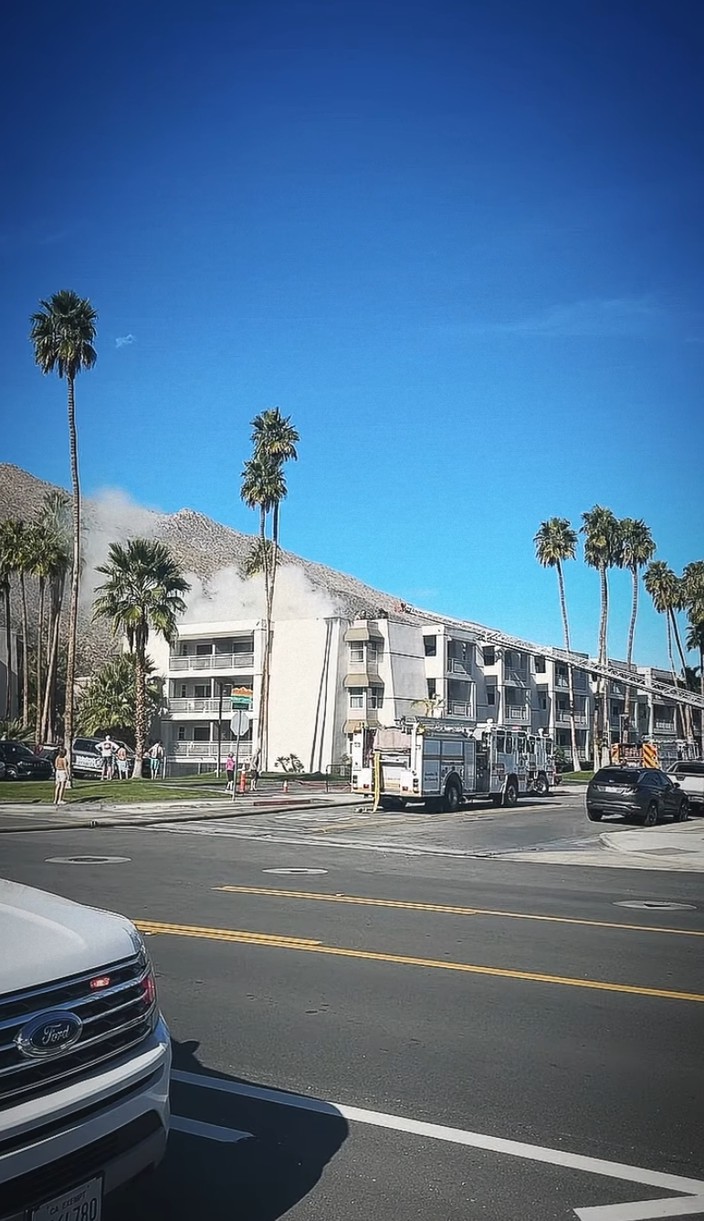 At ~11:26 AM, Palm Springs Firefighters responded to a 2 alarm structure fire contained to a single unit on the 3rd floor. Crews are currently conducting checks to determine whether any additional exposures occurred.