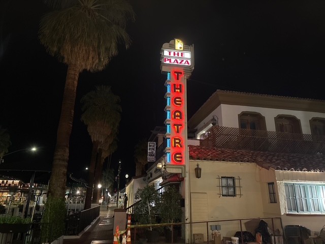 The Plaza Theatre is a city-owned historic theatre located in Downtown Palm Springs. The theatre has an impressive role in the history of Palm Springs. Its iconic identity was established on its opening to the public in 1936 with the world premiere of the Oscar-winning George Cukor film, Camille, with its legendary star, Greta Garbo, who allegedly slipped into the back of the theatre after the lights went down. In addition to being a movie theatre, it was also the venue for nationally-broadcast radio theatre programs by such luminaries as Bob Hope, Bing Crosby, Jack Benny, and Amos ‘n’ Andy.