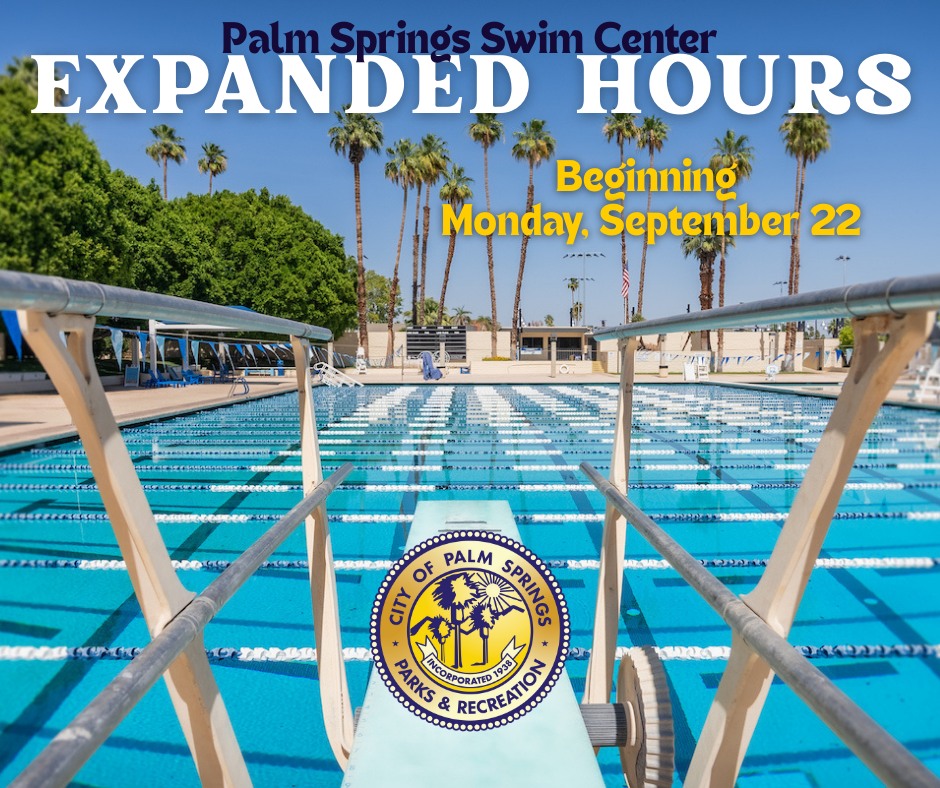 Starting Monday, September 22, the Palm Springs Swim Center is expanding its hours to give you even more opportunities for lap swimming, aquatic fitness, and family fun.